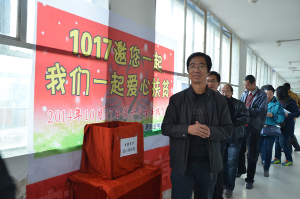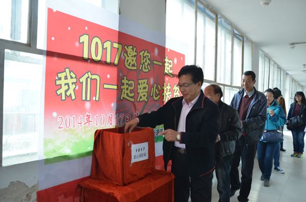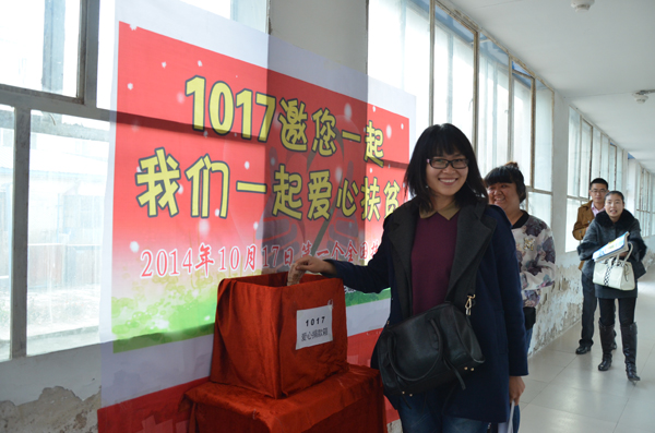 我校先后召開專題工作會(huì)議,即班子會(huì)、全體教師會(huì)、班干部會(huì),使全校師生思想統(tǒng)一、使扶貧助學(xué)觀念深入人心。同時(shí),通過校園宣傳欄、校園廣播、主體班會(huì)等形式發(fā)出“1017,邀您一起,我們一起愛心扶貧”活動(dòng)倡議,并結(jié)合我國(guó)貧困地區(qū)的生活情況以及社會(huì)上“獻(xiàn)愛心”的具體事例,激發(fā)學(xué)生獻(xiàn)愛心的熱情,營(yíng)造扶貧幫困的良好氛圍,爭(zhēng)取廣大師生的理解與參與。