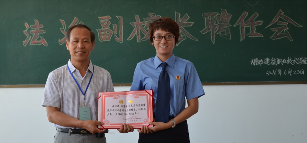 ? ? 2016年6月23日上午10點(diǎn),我校舉行了法治副校長(zhǎng)聘任儀式。參加會(huì)議的領(lǐng)導(dǎo)有法治副校長(zhǎng)潘慧英,現(xiàn)新城區(qū)人民檢察院科員,法治副校長(zhǎng)吳軍,現(xiàn)內(nèi)蒙古恒眾堯律師事務(wù)所律師,內(nèi)蒙古建筑職業(yè)技術(shù)學(xué)校黨總支書(shū)記、常務(wù)副校長(zhǎng)閆永平教授,副校長(zhǎng)謝飛,副校長(zhǎng)高忠厚及學(xué)校各處室負(fù)責(zé)人,本次會(huì)議由副校長(zhǎng)謝飛主持。