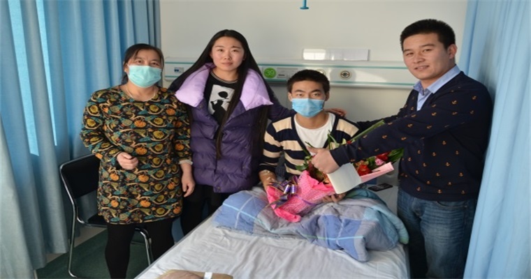 ??????捐款活動正式結束后,共籌得善款21441元。12月14日,團委書記于嘉奇老師、白亞楠老師及學生代表一同前往醫(yī)院探望蘭強同學,在第一時間將善款交到了蘭強同學的手中。