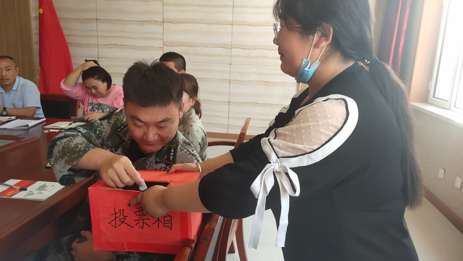 每一名黨員寫下并投出了自己的一票。由于預(yù)備黨員不具備選舉權(quán),本次與會(huì)的四名預(yù)備黨員同志分別擔(dān)任了數(shù)票、唱票、計(jì)票、監(jiān)票工作。最終選舉了劉仲德同志為黨支部先進(jìn)黨務(wù)工作者,王永超同