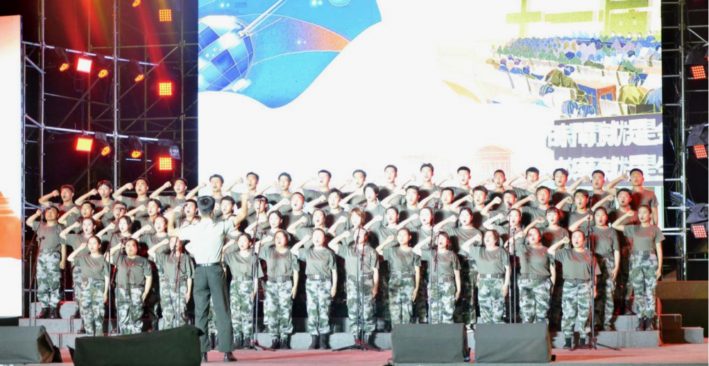 學(xué)院合唱隊(duì)整齊的隊(duì)伍,過(guò)硬的作風(fēng),積極的態(tài)度,樸素統(tǒng)一迷彩的著裝,學(xué)院師生頭頂烈日,克服困難,在極短的時(shí)間內(nèi)一遍又一遍的對(duì)節(jié)目進(jìn)行排練,用超強(qiáng)的凝聚力謳歌黨、謳歌祖國(guó)和人民,用歌聲唱響愛(ài)黨愛(ài)國(guó)的時(shí)代主旋律。