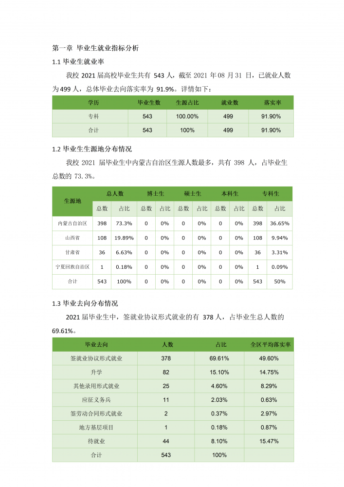 內蒙古能源職業(yè)學院2021年畢業(yè)生就業(yè)質量報告簡報