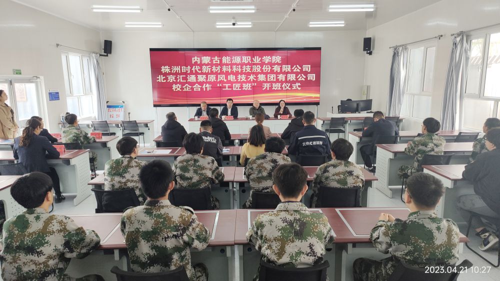 2023年4月21日上午,內(nèi)蒙古能源職業(yè)學(xué)院同株洲時(shí)代新材科技股份有限公司、北京匯通聚原風(fēng)電技術(shù)集團(tuán)有限公司在學(xué)院仿真實(shí)訓(xùn)室舉行校企合作“工匠班”開班儀式。中車時(shí)代新材風(fēng)電產(chǎn)品事業(yè)部蒙西分公司黨支部書記唐革新,北京匯通聚原風(fēng)電技術(shù)集團(tuán)有限公司董事長(zhǎng)高海坡,學(xué)院院長(zhǎng)趙曉峰,學(xué)院和兩大公司相關(guān)部門負(fù)責(zé)人,風(fēng)電工匠班同學(xué)出席會(huì)議。會(huì)議由學(xué)院副院長(zhǎng)張瑞英主持。