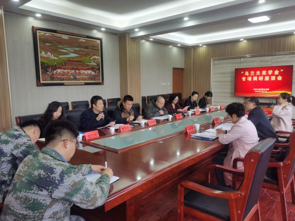 4月21日上午,烏蘭夫基金會理事自治區(qū)文史研究館原副館長孔令勛、烏蘭夫基金會辦公室主任岳紅燕、烏蘭夫基金會辦公室事業(yè)科工作人員王美麗一行三人蒞臨我校開展烏蘭夫獎學(xué)金專項調(diào)研。學(xué)院院長趙曉峰、副院長張瑞英、院長助理白亞楠、學(xué)院機關(guān)處各負責(zé)人以及三位學(xué)生代表參加會議,會議由學(xué)工部部長荊志方主持。