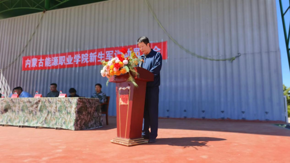 學工部部長荊志方宣讀《內蒙古能源職業(yè)學院2023級新生軍訓實施方案》,軍事訓練是各位同學融入大學生活的必經之路,希望參訓學生圓滿完成軍訓任務,增強組織性和紀律性,在政治思想、道德情操方面得到全面提升。