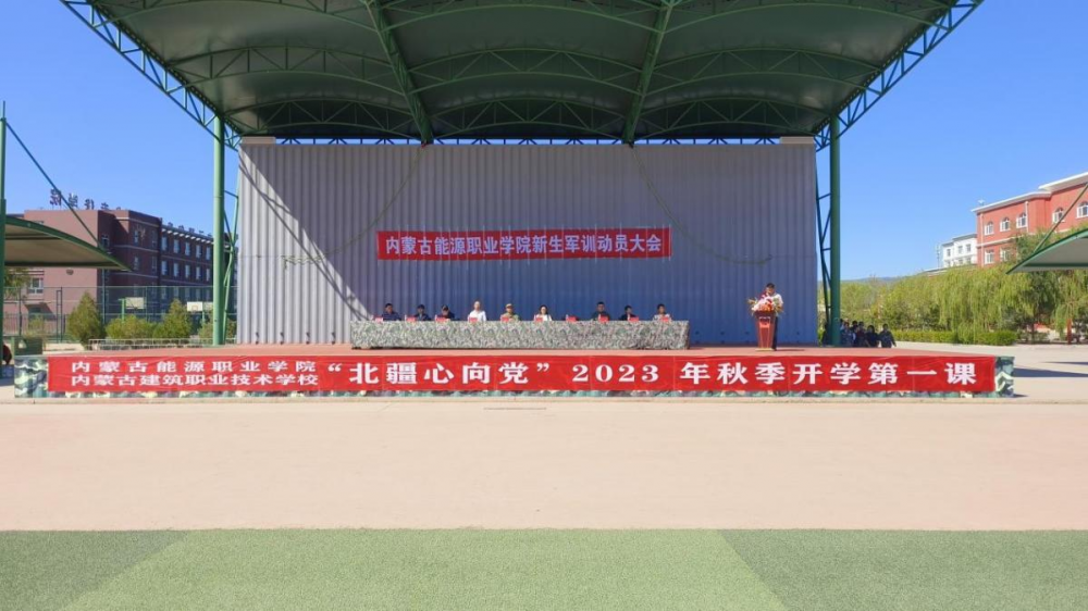 2023年8月30日上午,內蒙古能源職業(yè)學院、內蒙古建筑職業(yè)技術學校舉行2023年秋季“開學第一課”暨新生軍訓開營儀式,學院副院長張瑞英、風電專業(yè)學科帶頭人蒙永剛老師及各處室負責人出席本次儀式,黨委副書記白亞楠主持儀式。