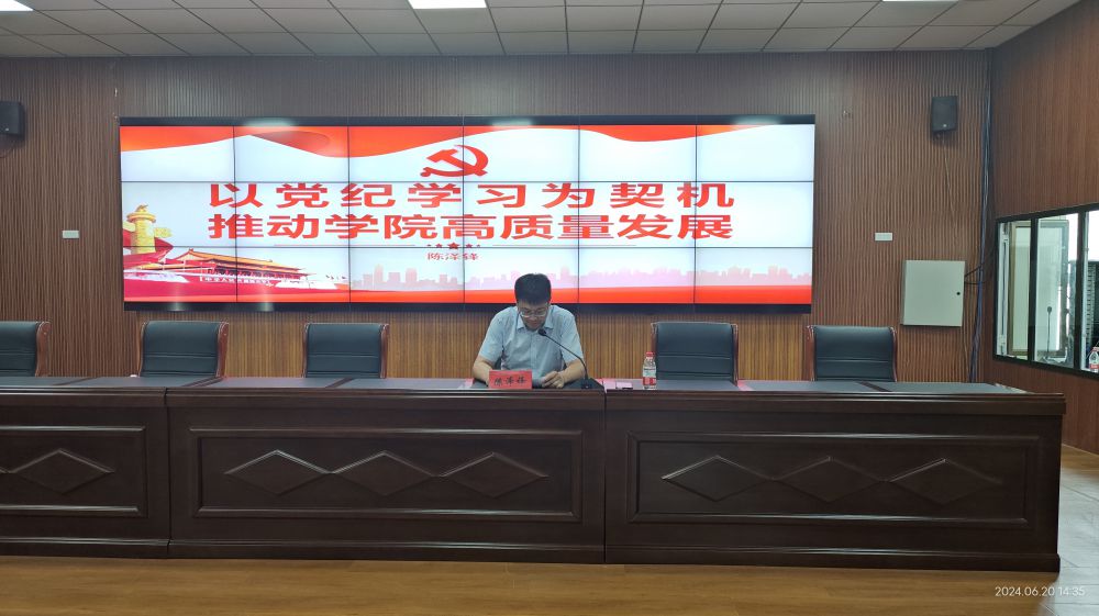 為進(jìn)一步增強(qiáng)黨員的規(guī)矩意識和紀(jì)律意識,推動(dòng)黨紀(jì)學(xué)習(xí)教育走深走實(shí)。6月20日下午,在學(xué)院多功能報(bào)告廳,學(xué)院黨委書記陳澤鋒“以黨紀(jì)學(xué)習(xí)為契機(jī)推動(dòng)學(xué)院高質(zhì)量發(fā)展”為主題,為全體黨員、全院教職工和入黨積極分子講授了一堂生動(dòng)的黨課。