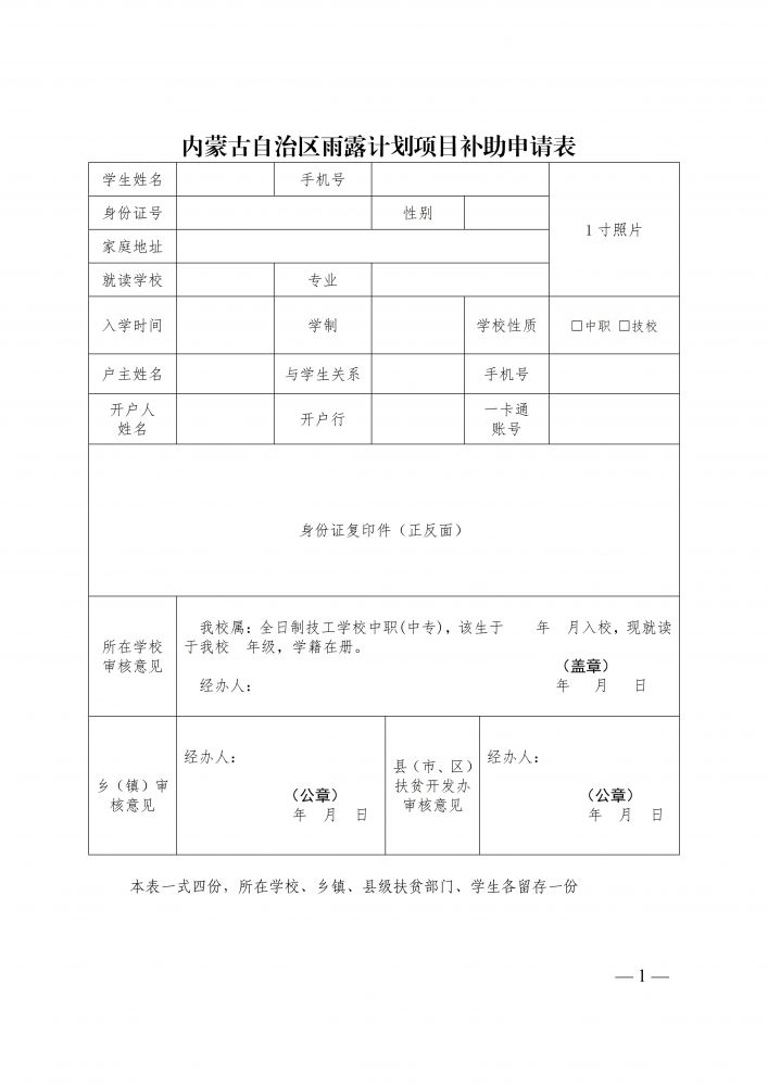 內(nèi)蒙古自治區(qū)雨露計(jì)劃項(xiàng)目補(bǔ)助申請(qǐng)表