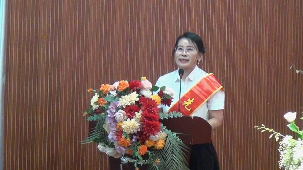 岳麗娟代表優(yōu)秀教育工作者發(fā)言,她表示作為一名優(yōu)秀的教育工作者,不僅要具備扎實的專業(yè)知識,更要擁有高尚的師德情操和無私的奉獻精神。