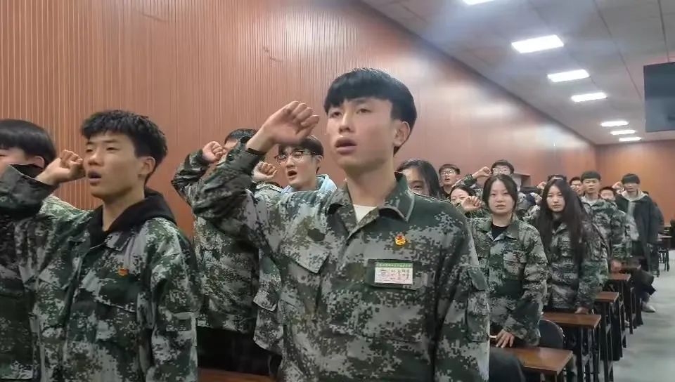 入團儀式在嘹亮的國歌聲中拉開帷幕。全體師生目光堅定、莊嚴(yán)肅穆,帶著激動的心情唱響國歌,滿腔愛國情在嘹亮的歌聲中激蕩,為入團儀式鋪上絢麗的色彩。
