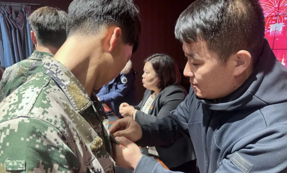 學(xué)院黨委副書記、副院長白亞楠、團委書記、學(xué)生工作部副處長宇文娟、中共黨員財務(wù)部紀(jì)慧敏老師、中共黨員學(xué)生工作部吳凱英老師、中共黨員學(xué)生工作部李豐彪老師為新團員頒發(fā)團員證、佩戴團徽。團徽是共青團員身份的象征,是承載著責(zé)任和使命,提醒著青年團員時刻牢記自己的團員身份。新團員們接過的不僅僅是一枚團徽,更是代代相承的紅色理想與信念。