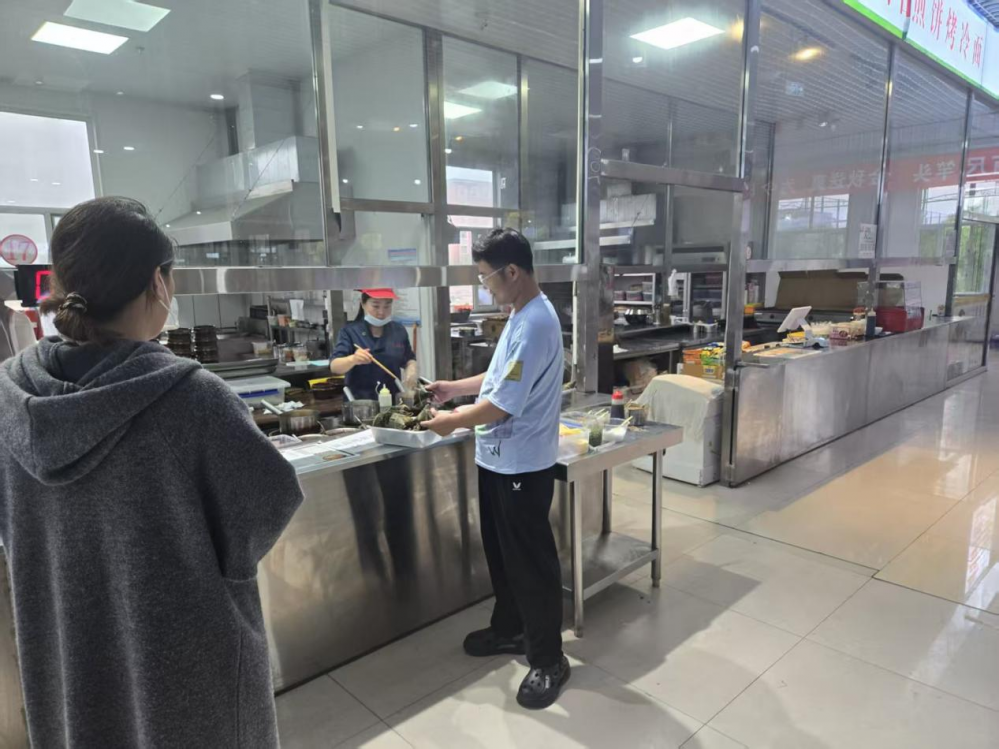 為了讓師生們品嘗到正宗、美味的端午美食,學(xué)院后勤部門提前數(shù)日便開始忙碌起來。從食材的采購到口味的調(diào)配,每一個環(huán)節(jié)都嚴(yán)格把關(guān)、精心安排。工作人員穿梭在廚房與食堂之間,用心包制著每一個粽子,熬制著每一份涼糕,只為將最真摯的祝福融入其中。