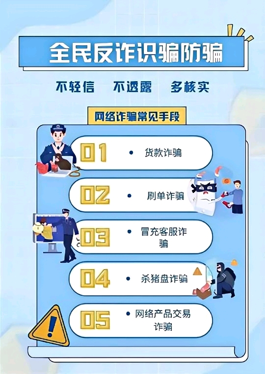 當(dāng)前,電信網(wǎng)絡(luò)詐騙犯罪形勢嚴峻,已成為發(fā)案最多、上升最快、涉及面最廣、人民群眾反映最強烈的犯罪類型。為提升廣大群眾識騙防騙能力,有力震懾違法犯罪分子,我們一起學(xué)習(xí)了解電信詐騙,助同學(xué)們輕松應(yīng)對電信騙局,讓我們一起努力,共筑反詐防線。