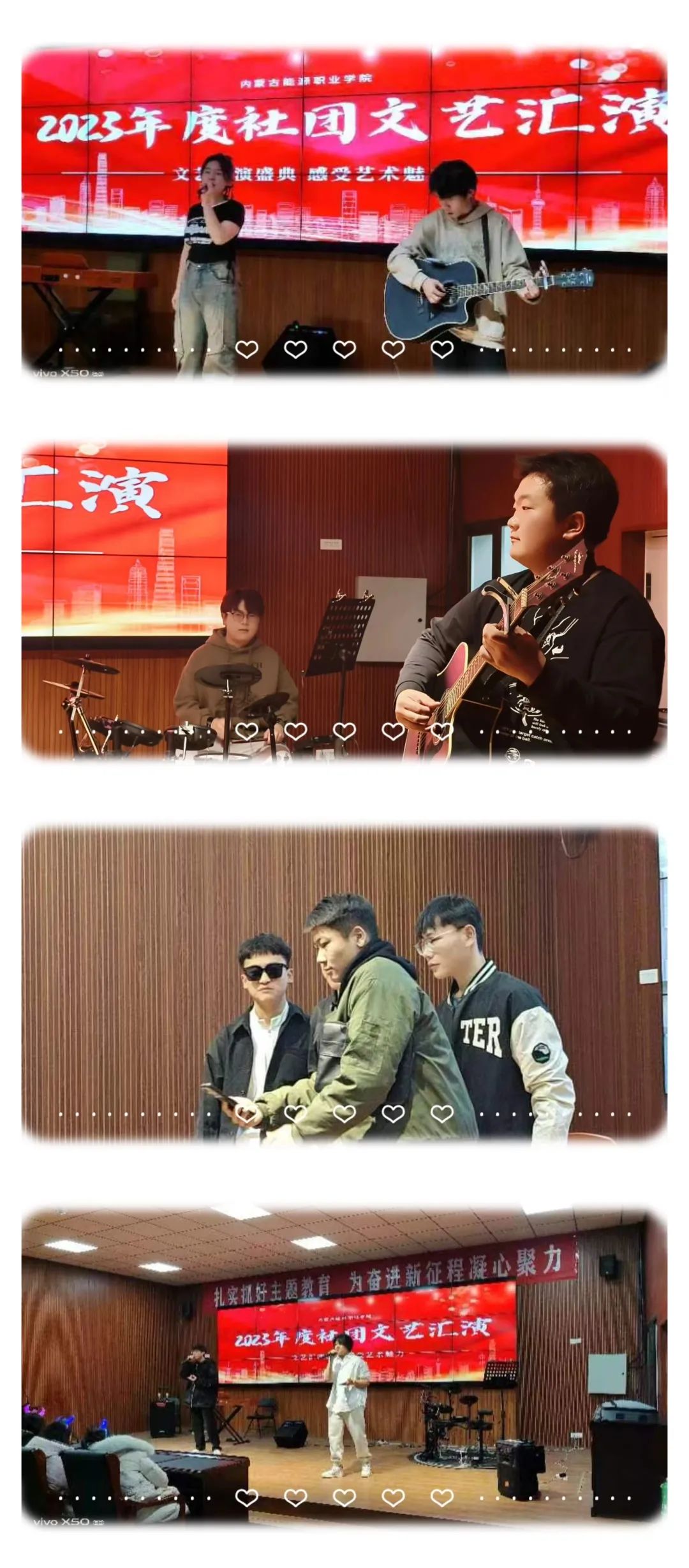 12月21日晚5點(diǎn),由共青團(tuán)內(nèi)蒙古能源職業(yè)學(xué)院委員會(huì)學(xué)生社團(tuán)舉辦的2023年度社團(tuán)文藝匯報(bào)演出在多功能報(bào)告廳隆重舉行,學(xué)院師生代表300多人參與了本次晚會(huì)。
