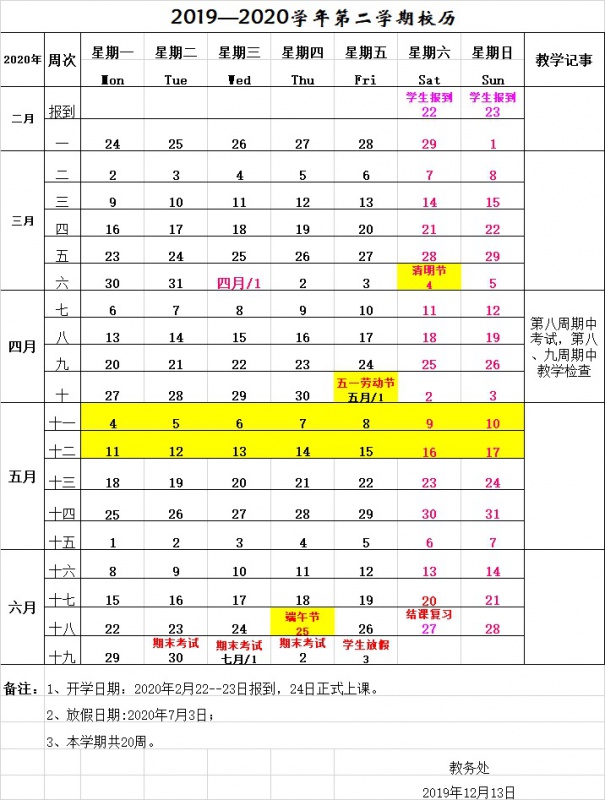 大專部2019-2020學(xué)年第一學(xué)期末考試安排